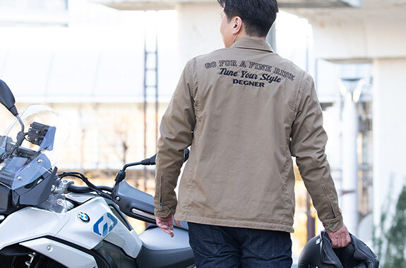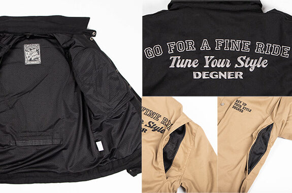 モーターテイストあふれる本革ワッペンと腕に入った本革のラインがアクセントのメッシュジャケット