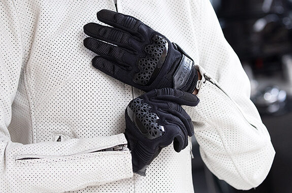 手首と指先のカラーがアクセントのメッシュレザーグローブ