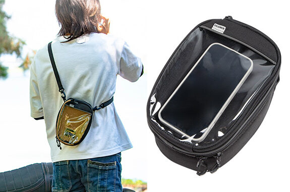 コンパクトなクリアトップ付きタンクバッグ